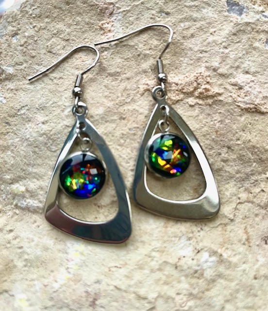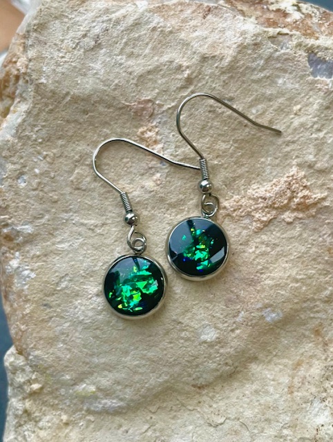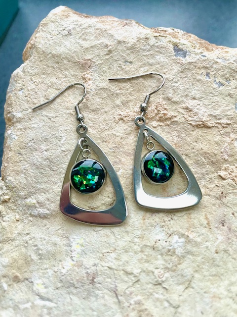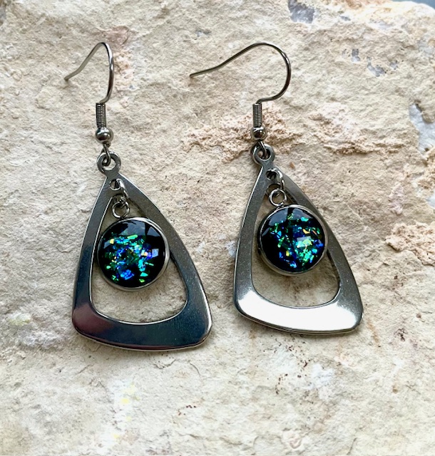 The pieces are in a stainless steel setting. They are all handmade, unique and stunning as you can see, Oraphim’s special formula has our ‘Trinity’ mix, with three different shungite powders from Zazhoginskoje, Karelia (certificated) Elite and Plain black powder & powder infused with 99.9% pure silver.